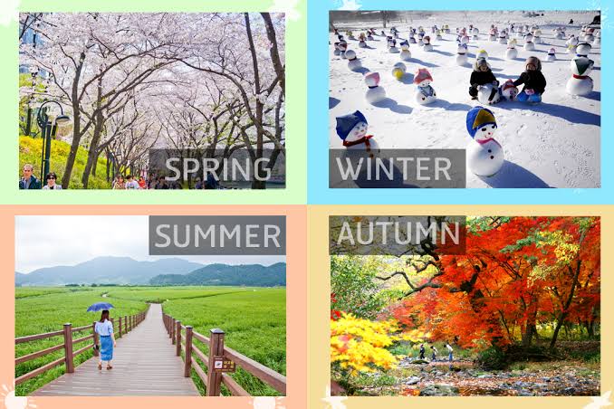 ประเทศเกาหลีตั้งอยู่ในทวีปเอเชียตะวันออก ซึ่งติดกับประเทศญี่ปุ่น จีน และเกาหลีเหนือเป็นประเทศที่มีภูมิอากาศค่อนข้างหนาว โดยประเทศเกาหลีจะมี 4 ฤดู ได้แก่ ฤดูร้อน (Summer) ฤดูใบไม้ผลิ (Spring) ฤดูใบไม้ร่วง (Autumn) ฤดูหนาว (Winter) ซึ่งอากาศใน-ฤดูร้อนของประเทศเกาหลีจะค่อนข้างร้อนโดยอากาศจะอยู่ที่ประมาณ 20-35 องศา-ฤดูใบไม้ผลิของเกาหลี จะมีอากาศที่ค่อนข้างเย็นสบายและมีฝนตกลงมา เป็นช่วงๆ โดยในหน้านี้จะมีอุณหภูมิอยู่ที่ประมาณ 15-25 องศา-ฤดูใบไม้ร่วงของเกาหลี จะเป็นช่วงที่มีอากาศเย็นสบาย และเหมาะแก่การท่องเที่ยวประเทศเกาหลีที่สุด โดยอากาศในช่วงฤดูใบไม้ร่วงนี้จะอยู่ที่ 5-20 องศา ซึ่งจะอยู่รอยต่อระหว่างช่วงฤดูใบไม้ผลิและฤดูหนาว ทำให้ช่วงที่ใบไม้ร่วง และประเทศเกาหลีจะมีสีสรรทั้งประเทศ และเหมาะแก่การท่องเที่ยวเกาหลีในช่วงฤดูนี้เป็นอย่างยิ่ง-ฤดูหนาวของเกาหลี ฤดูหนาวประเทศเกาหลีจะมีอากาศค่อนข้างหนาวเย็นอย่างมาก โดยอุณหภูมิเฉลี่ยของฤดูนี้จะอยู่ที่ 5- (-20) องศา และมีแนวโน้มว่าจะหนาวเย็นขึ้นเรื่องๆทุกปีโดยช่วงก่อนจะถึงหน้าหนาว คนเกาหลีมักจะทำกิมจิเอาไว้ทุกๆบ้าน แม้กระทั่งในกรุงโซล เพื่อเก็บไว้เป็นอาหารในช่วงฤดูหนาวนี้จะไม่ค่อยมีผู้คนออกมาเดินข้างนอก เนื่องจากอากาศที่หนาวเย็น + กับลมและหิมะ ทำให้ช่วงหน้าหนาวของเกาหลีจะมีลักษณะคล้ายกบจำศีล ซึ่งจะเริ่มตั้งแต่เดือน พฤศจิกายน ไปจนถึงต้นเดือน มีนาคม